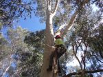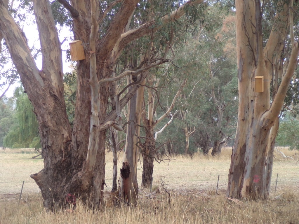 Thirty nest boxes have been installed in the rail corridor between Cowra and Young as part of the John Holland Squirrel Glider Conservation Project. Lachlan Valley Tree Services expertly climbed and installed the boxes in a variety of eucalypts in a location where Squirrel Gliders were detected earlier in the year. Nest boxes play an important role in providing denning and nesting sites when there is a shortage of suitable natural habitat. All the nest boxes were constructed with rear entrances, which helps to discourage invasive bird species such as Starlings, and carpet has been attached to the inside of the lid to prevent European Bees attaching their hives.