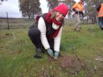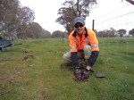 Almost 2,500 mid-storey and shrub species of plants have been installed for the John Holland Squirrel Glider Conservation Project at Bendick Murrell and Crowther along the Blayney to Demondrille non-operational rail line. The seed was collected from local provenance and will provide habitat and foraging opportunities not only for Squirrel Gliders but also for a range of woodland birds including the beautiful but threatened Superb Parrot. Chris from John Holland Pty Ltd rolled up his sleeves and joined in the planting activities with the crew from Oz Plants in Cowra during a week of very cold temperatures. Forecast rain later this week and warming temperatures at the onset of spring should ensure a good start for all the plants.
