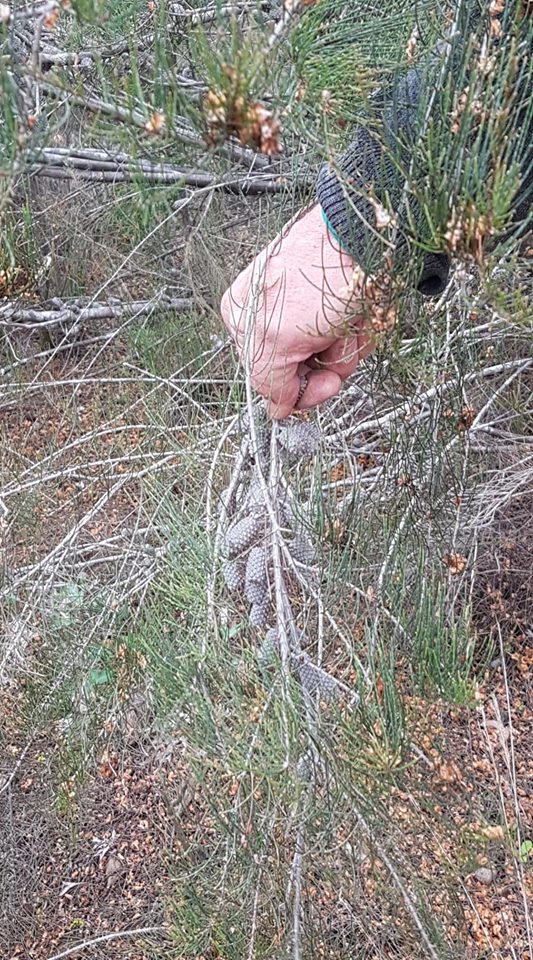 During July and August we undertook our collection of Allocasuarina diminuta seed. The aim for this project is to grow out 1000 trees to plant on 6 local properties. Seed collection is always lots of fun and it is interesting to note that the Glossies prefer seed from certain trees. The aim was to collect from those trees the Glossies have already eaten from. Always, when seed collecting, you collect no more than 10% of the seed from a plant. There are also plenty of other rules around seed collecting especially if you are collecting within an endangered ecological community. If in doubt it is always best to check with relevant authorities. There is a short guide to seed collection here. When you are in search of the trees the Glossies have selected it’s a pretty easy task as they leave plenty of mess 🙂 Pictures below.