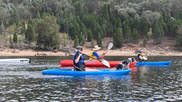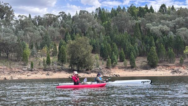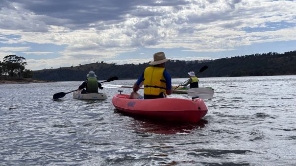 Wyangala Dam, or Wyangala Waters as it’s also known, sits at the merge point (confluence) of the Lachlan (Kalari/ Galari) and Abercrombie rivers. Abercrombie is a tributary of the Lachlan, along with the Belubula which also runs through our district. All up the Wyangala Dam holds 1,217 gigalitres of their water in a lake whose diameter spans some 54Km – and no, we didn’t even attempt to kayak it all this time!
