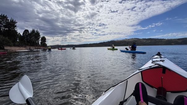 The weather was hot and slightly windy so we opted to go against the breeze on the way out so our return journey would be a little easier on the muscles. We also stayed close to the shore line and kept an eye out for reptiles and birds out on the rocks or in the trees. Wyangala is in granite country and features many boldered areas with rocky outcrops in between gum, kurrajong and she-oak trees. While it’s clear there’s some erosion and degradation of the Box Gum Grassy Woodland naturally present, it’s still a beautiful place to be and a one that attracts a diverse array of bird life, some of which we encountered on our paddle.