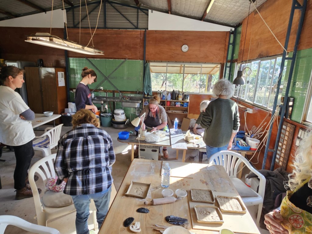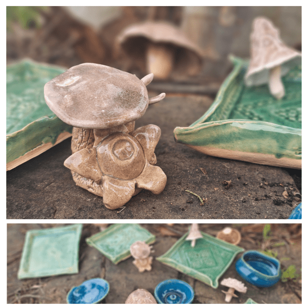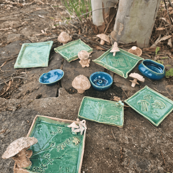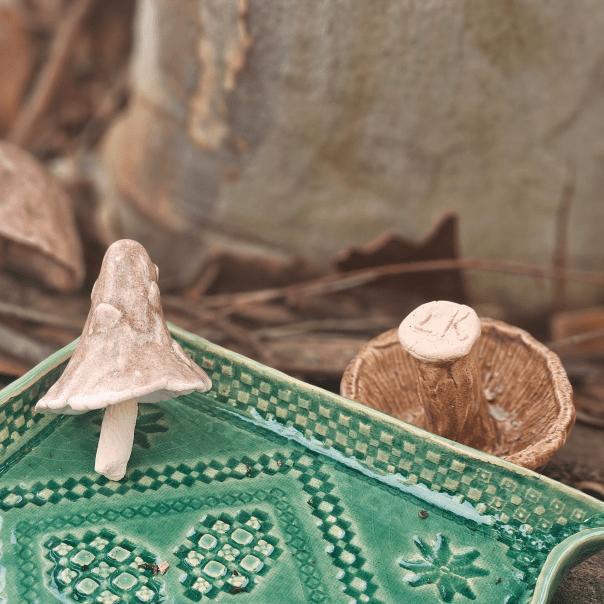 After our foray we came inside to the pottery barn to make our fungi-inspired platters & sculptures. Some of us even tried out the potter’s wheel while the rest of us looked on while sharing around a deck of fungi-inspired affirmation cards & flicking through a beautiful vintage fungi guide found for $1 in an op shop!