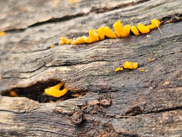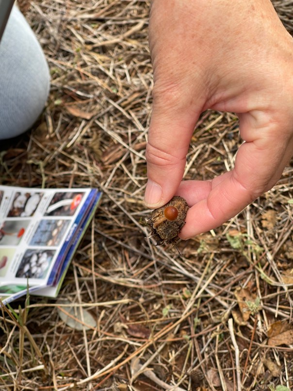 While some puff balls and horse dung fungi had managed to pop out just in time for us to see them, we were mostly finding fungi on rotting wood and under the canopy of the she oaks.