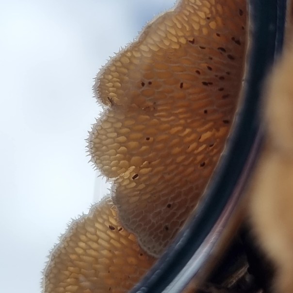 A timely drop of rain brought out a few fungi which we hunted down with great enthusiasm. We uploaded some of our findings to iNaturalist to help build on what we know of this site. Then, once our foray time was up, we shared our discoveries with the rest of the group.