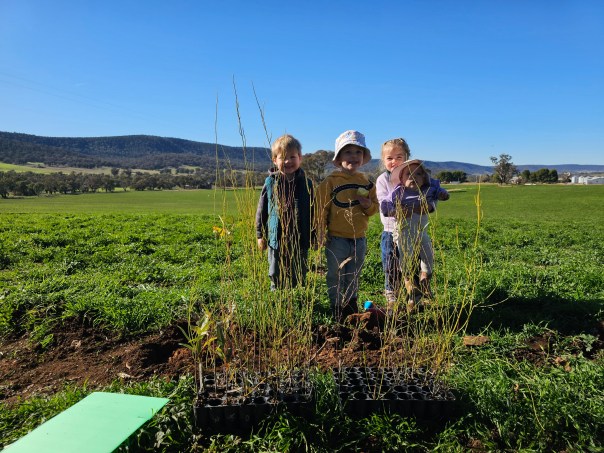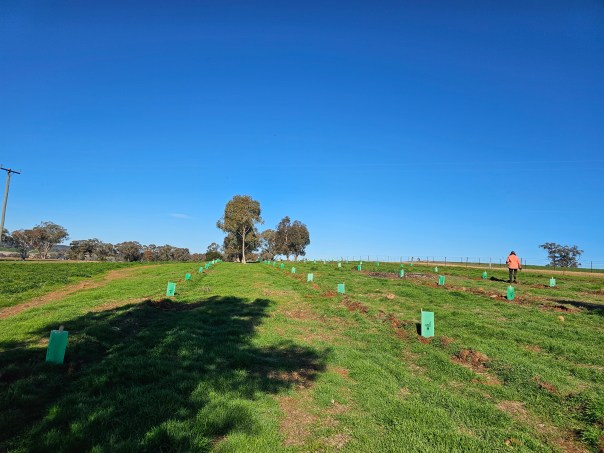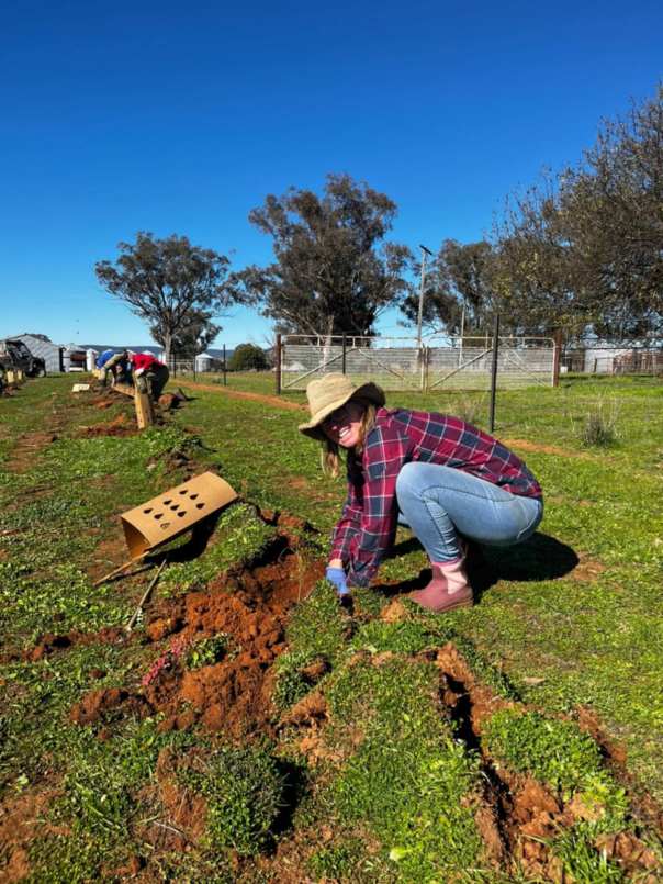 While we planted we were serenaded by the sweet sounds of a butcher bird before being joined by a boystrous group of Superb Parrot! We captured some of their chatter & Shenanigans to share with you all. I’d like to think they’d flown across to encourage us on our planting & to sing up the soil microbes, water and sun so that these trees will grow tall and strong. Whatever they were thinking we were thrilled to have them grace us with their company as we worked this beautiful patch of Wiradjuri land for them.