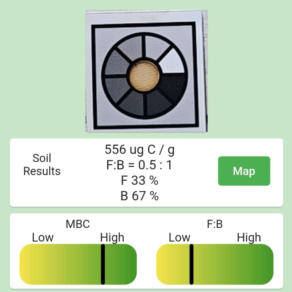 The are we were planted was mostly covered by short grass with not much species diversity at this stage and we recorded a total microbe count of approx 500 ug C/g with a Fungi: Bacteria ratio of 33:67. These results are pretty encouraging – it’s hard to give an exact benchmark for what constitutes a good vs bad site as factors such as the weather, ground cover, soil type, site geology and site management history all play a role but as a very general rule of thumb, a ratio like this is indicative of early succession grasslands. So we’re well above a ‘degraded’ or disturbed level where weeds dominate but are yet to fully reach the level of a complex, natural grassland with clover and other forbs.