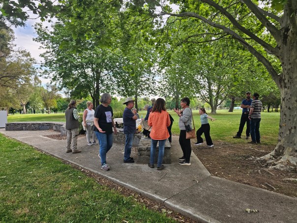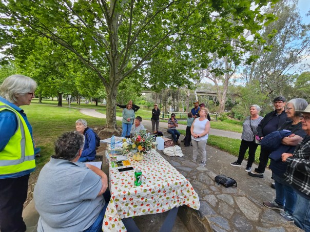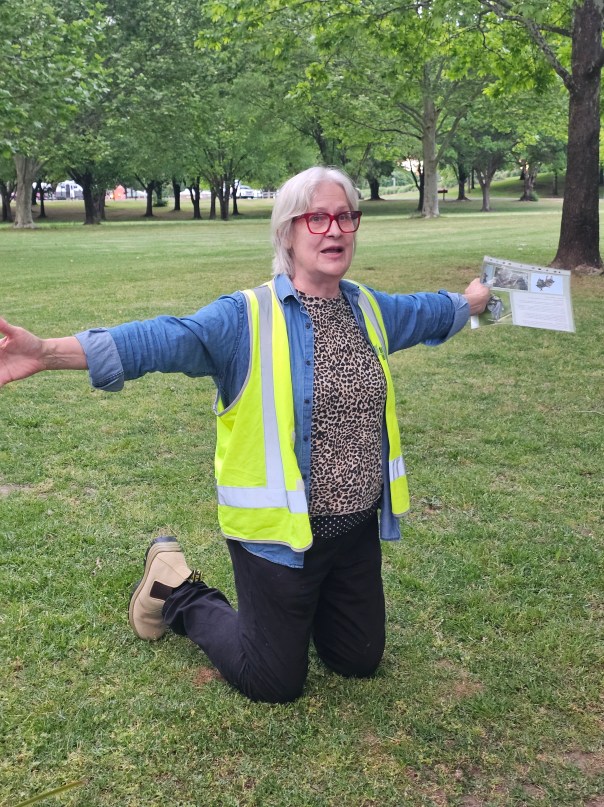 Sandra explained how bats grow forests while we sleep by carrying seeds far and wide before pooping them out where some germinate and become new forests. She explained her work as a bat carer, talked about bat biology, habits and their personalities, dispelling all prior notions we held of these being dirty, evil creatures – they are actually very cute, intelligent and personable! All this as we walked along the banks of the Kalari Bila (Lachlan River) here in Cowra.