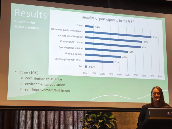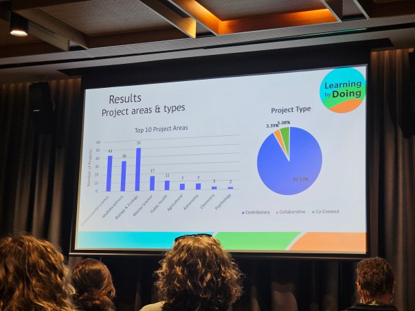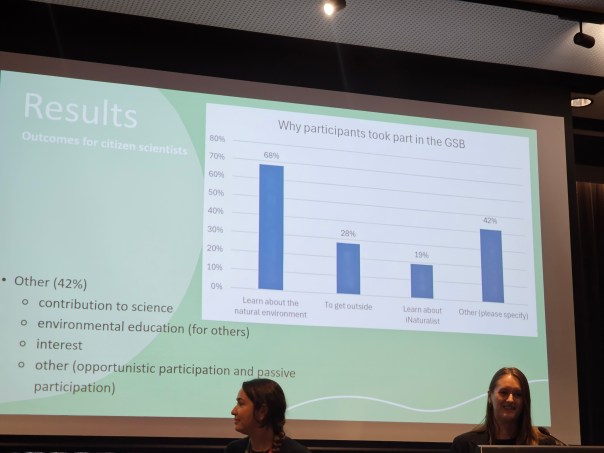 - Victoria Zhang from the University of Sydney presented results of a literature review on citizen science in schools and found that Earth and Environment Science had the most engagement and in that syllabus it was projects around microbiology that were most commonly undertaken followed by bird observations.