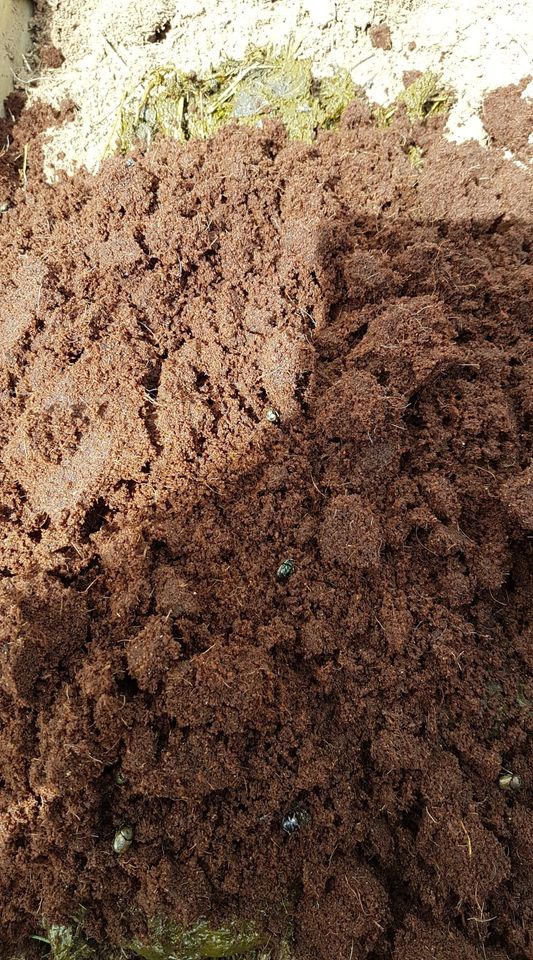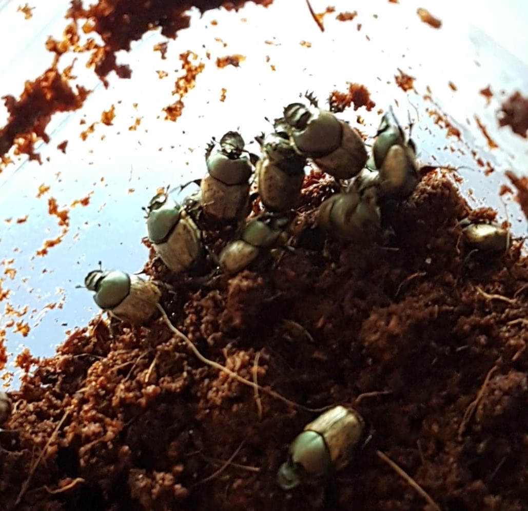 They are now turning the piles of cattle dung, that we feed them about twice a week, into a shell really quickly. It is awesome to see the work they do to bury the dung within the nursery. They cannot escape and so they are totally reliant on us to provide for them.