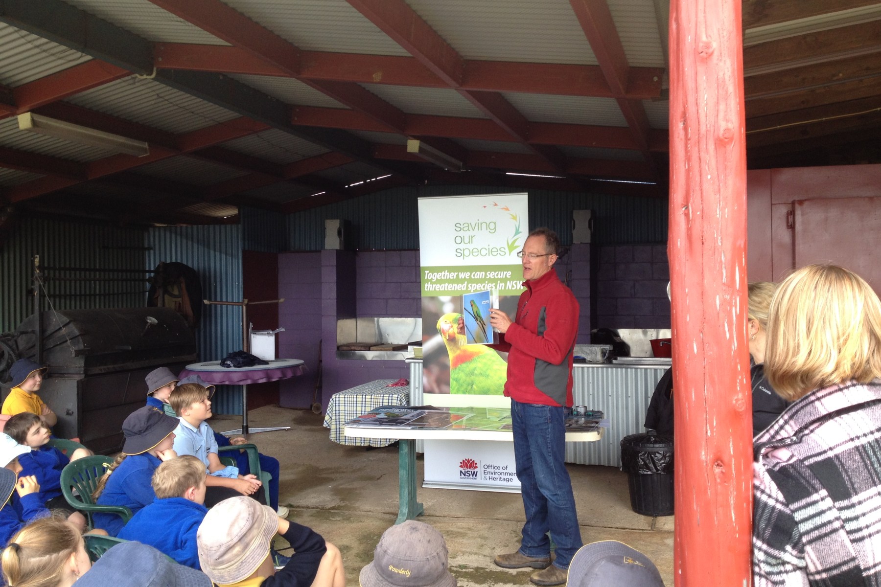 Mid Lachlan Landcare and Young District Landcare collaborated recently for the Squirrel Glider Field Day held at Crowther NSW (between Cowra and Young). The field day coincided with National Threatened Species Day held each year on September 7th to commemorate the death of the last Tasmanian Tiger held in Hobart Zoo in 1936. A woodland nature walk at Clover Leigh Golf Club provided an engaging and beautiful location for the day where 120 students from five primary schools attended to learn about local threatened species including how a nest box program is providing alternative habitat for squirrel gliders, and how to identify and monitor superb parrots with the Office of Environment and Heritage’s threatened species team. Students also had an amazing up-close wildlife experience with the Zoomobile from Sydney’s Taronga Zoo.