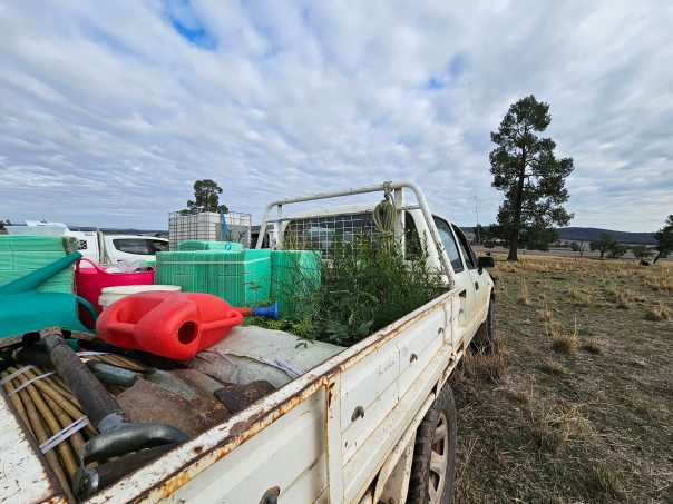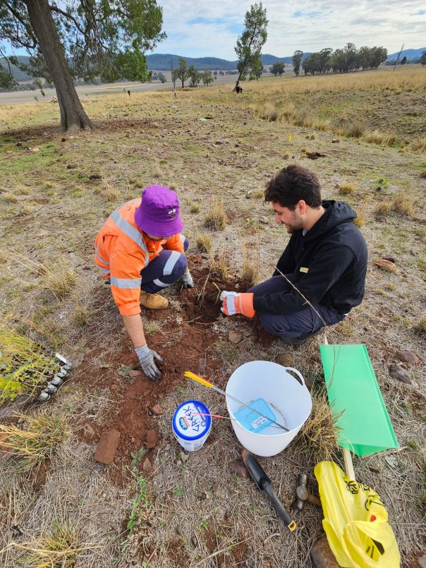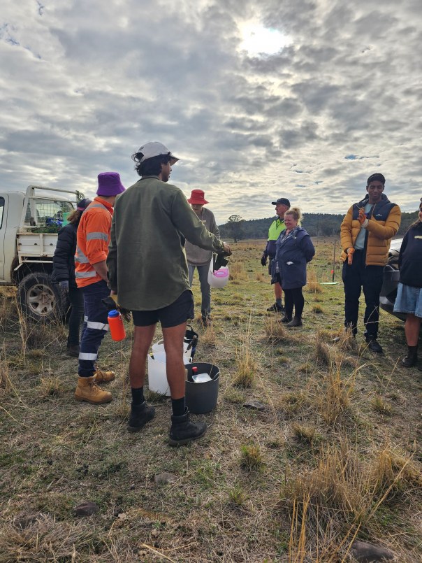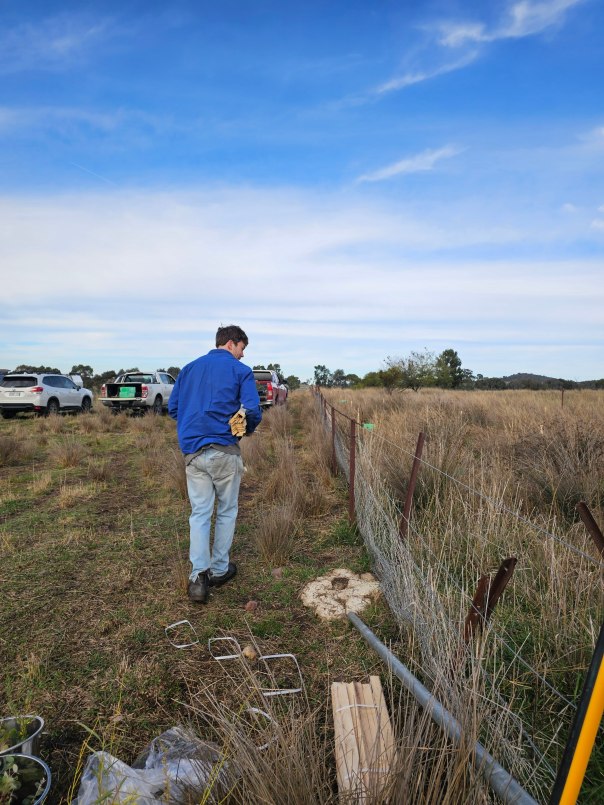 A fabulous crew of volunteers attended our tree planting extravaganza on Saturday morning with Eugowra Catchment Landcare. This included a team of young folks from Sydney who’d previously been involved in The Big Lift and are now, post university, continuing their rural volunteering on their own terms. They were a very interesting & highly skilled bunch and it was great to get to know them a little more in between digging, planting and watering.